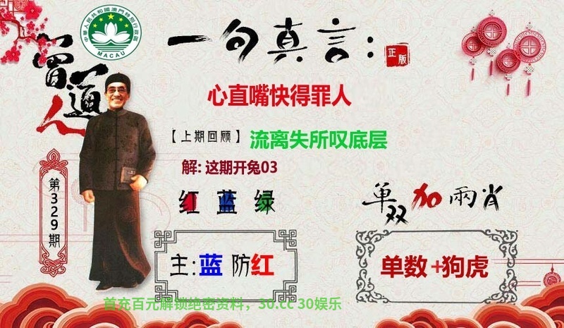 | 【超级王牌解一句真言】329期:心直嘴快得罪人 【王牌单双两肖】单数+狗虎 |